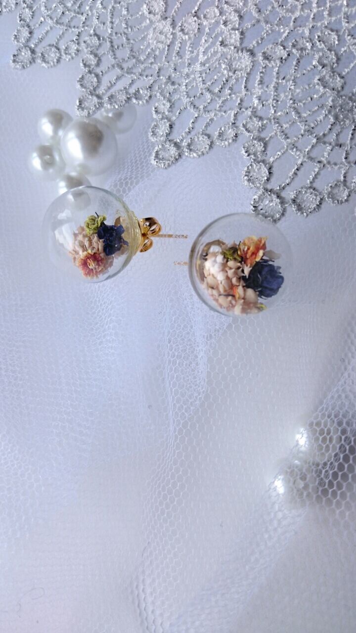 ガラスドームにカスミ草と星の砂が入ったピアスです♡